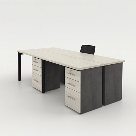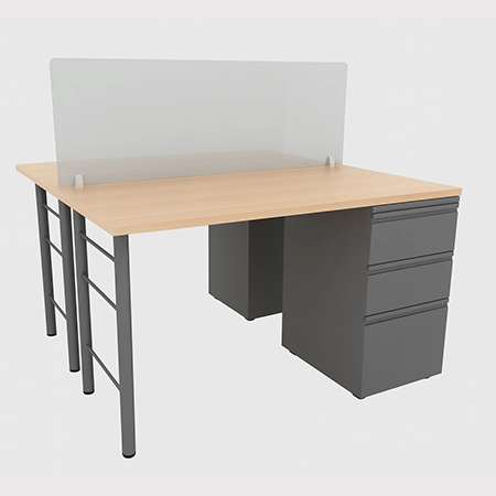 Isla recta de 2 puestos, compacta y versátil para oficinas pequeñas.